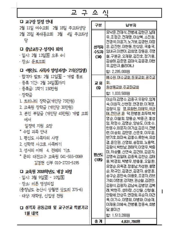 *사순대심방 : 사순절 기간 대심방이 있습니다. 월, 화요일 저녁을 활용해서 할 예정입니다. 다음 주에 공지하겠습니다. 특별히 개인 신앙상담도 병행할 예정입니다. (느림보 심방)