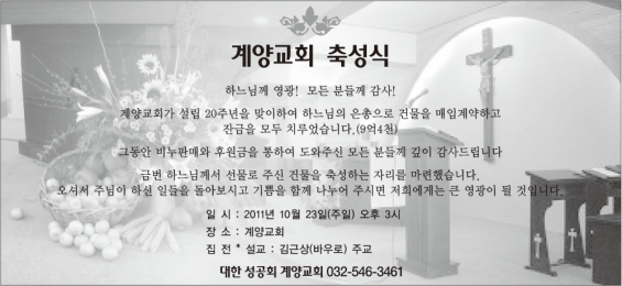 계양교회 축성식 안내 2011년 10월 23일 15시(오후3시)|