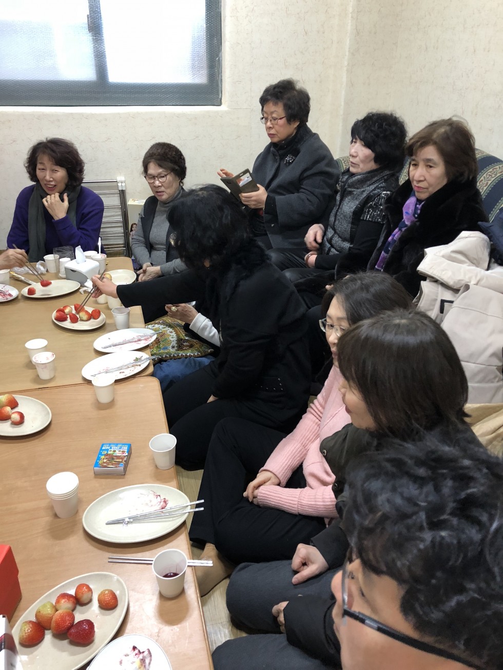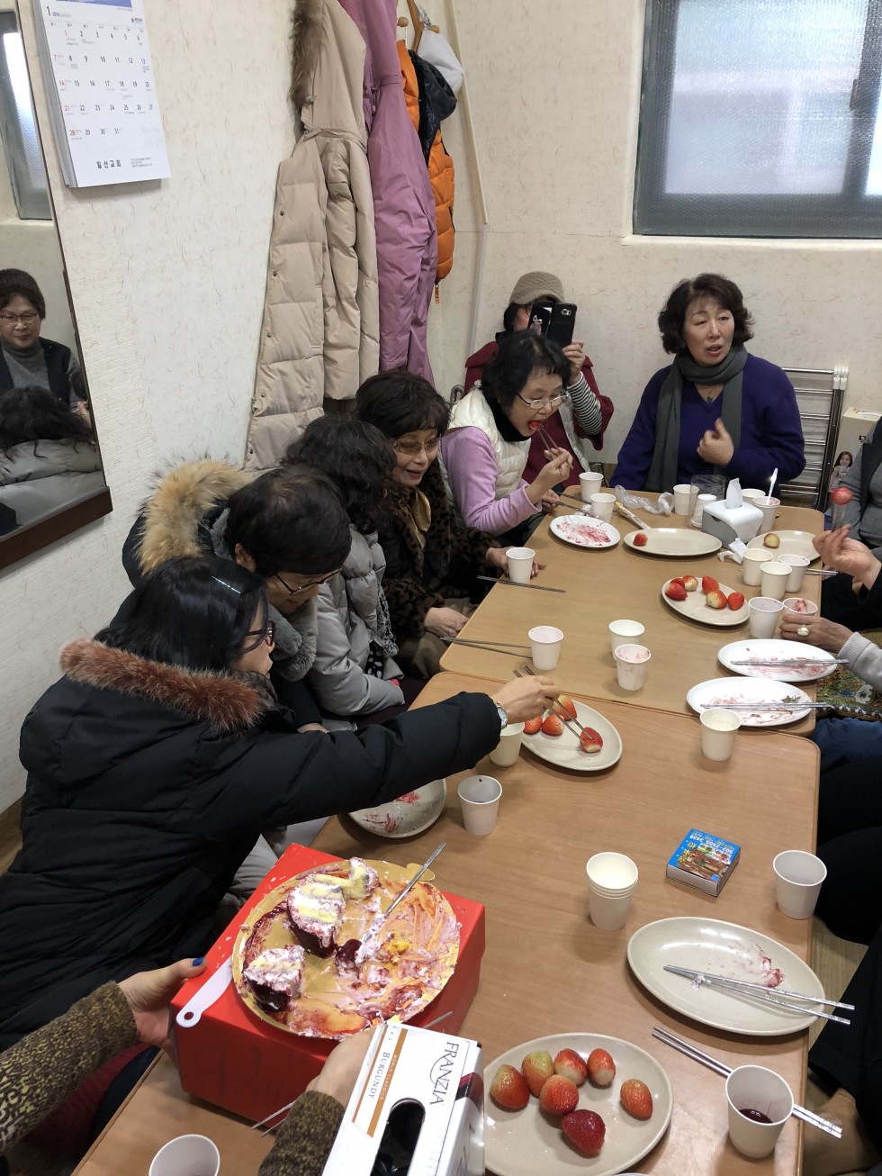 점심애찬, 과일, 케익나눔 후 윷놀이.